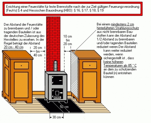 Der Zwischenraum RAUCHROHR - HOLZBALKEN muß mit formbeständigen, zum Schornsteinbau zugelassenen, Baustoff vermauert werden.